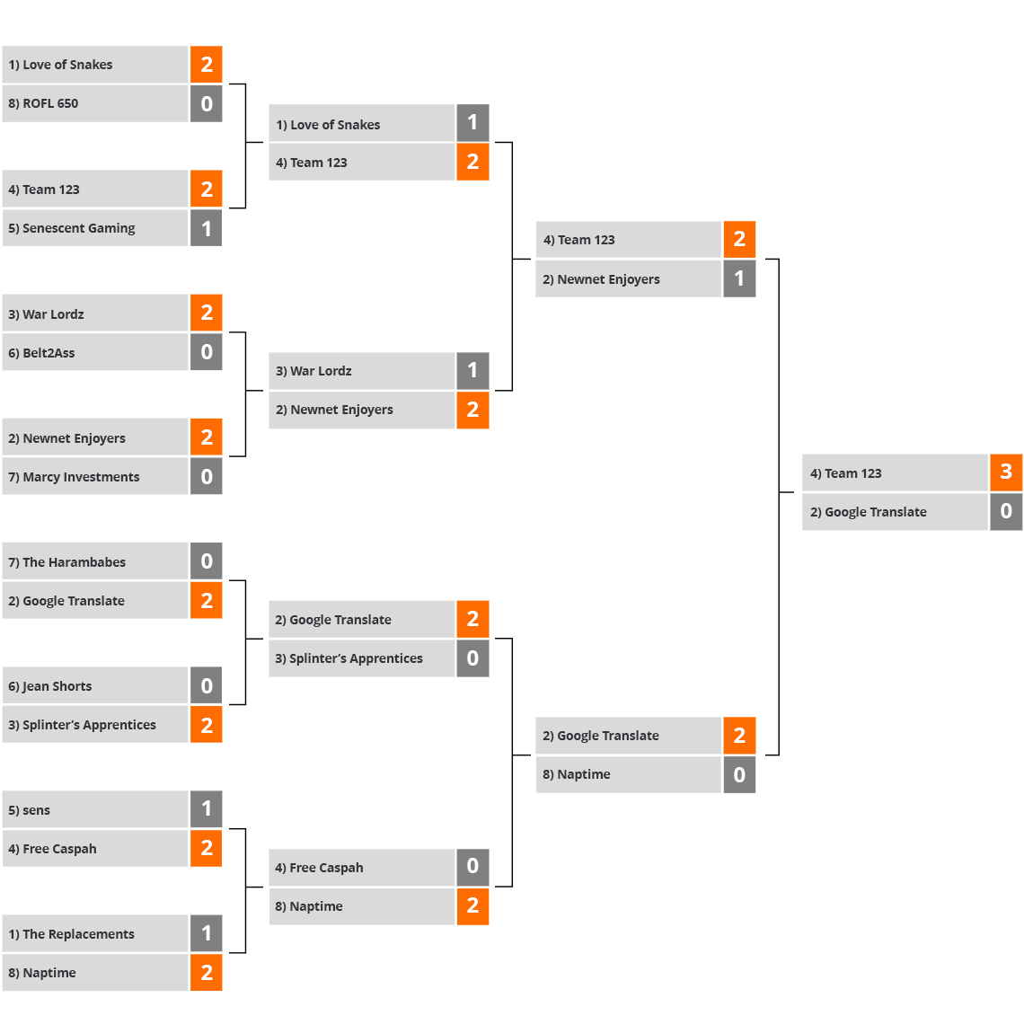 Official placement matches and playoff bracket. View match results for further analysis.