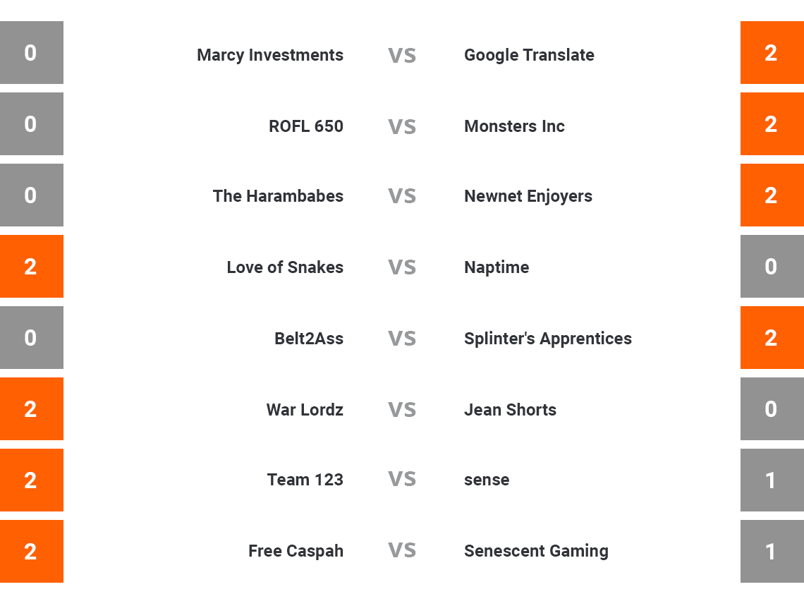 Match ResultsOpening matches to determine seeding for the playoff bracket.